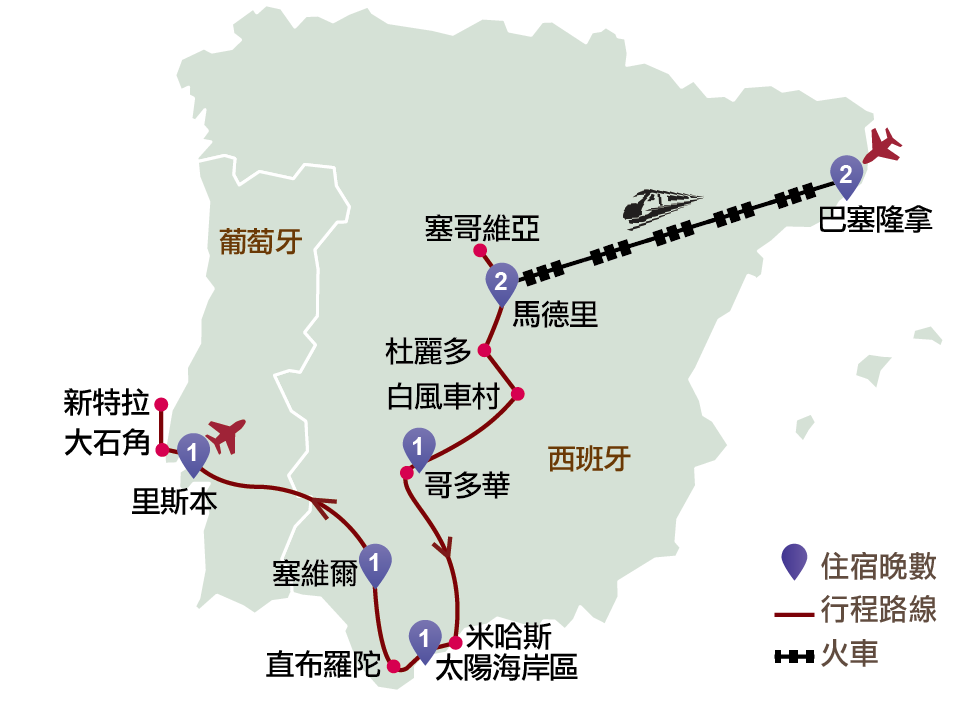 西班牙:巴塞隆拿、馬德里、塞哥維亞、杜麗多、白風車村、哥多華、米哈斯、太陽海岸區、塞維爾、直布羅陀