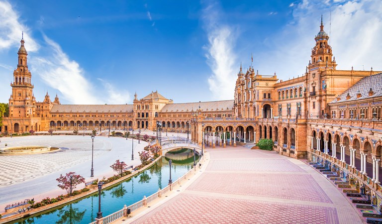 1992年西班牙舉辦世界博覽會的所在地,廣場呈半圓形,彩繪瓷磚壁畫介紹西班牙各個城市的地理位置,和過去歷史與當地特色文化。