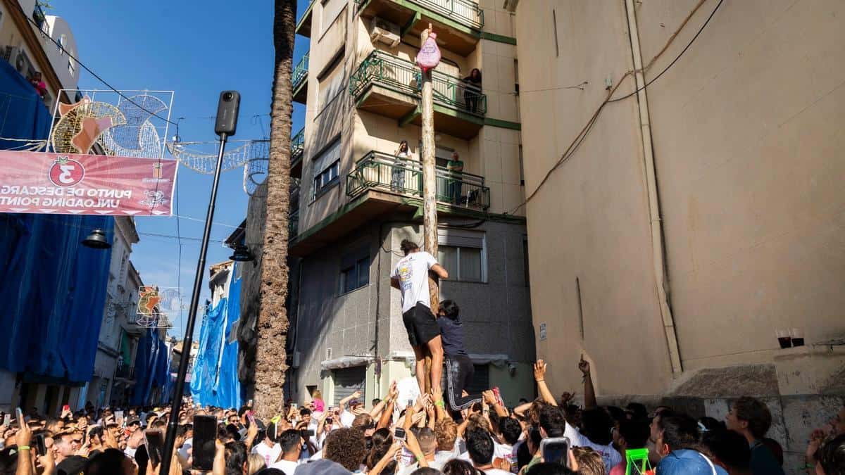 - 搶火腿大賽:以爬油桿搶火腿為開場,當火腿被取下後,第一聲爆竹聲響起,標誌著蕃茄大戰的開始。