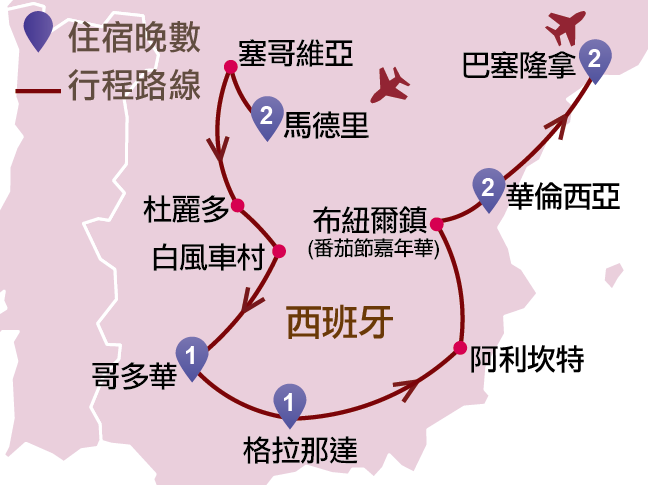 西班牙:馬德里、塞哥維亞、杜麗多、哥多華、格拉那達、阿利坎特、華倫西亞、布紐爾鎮、巴塞隆拿