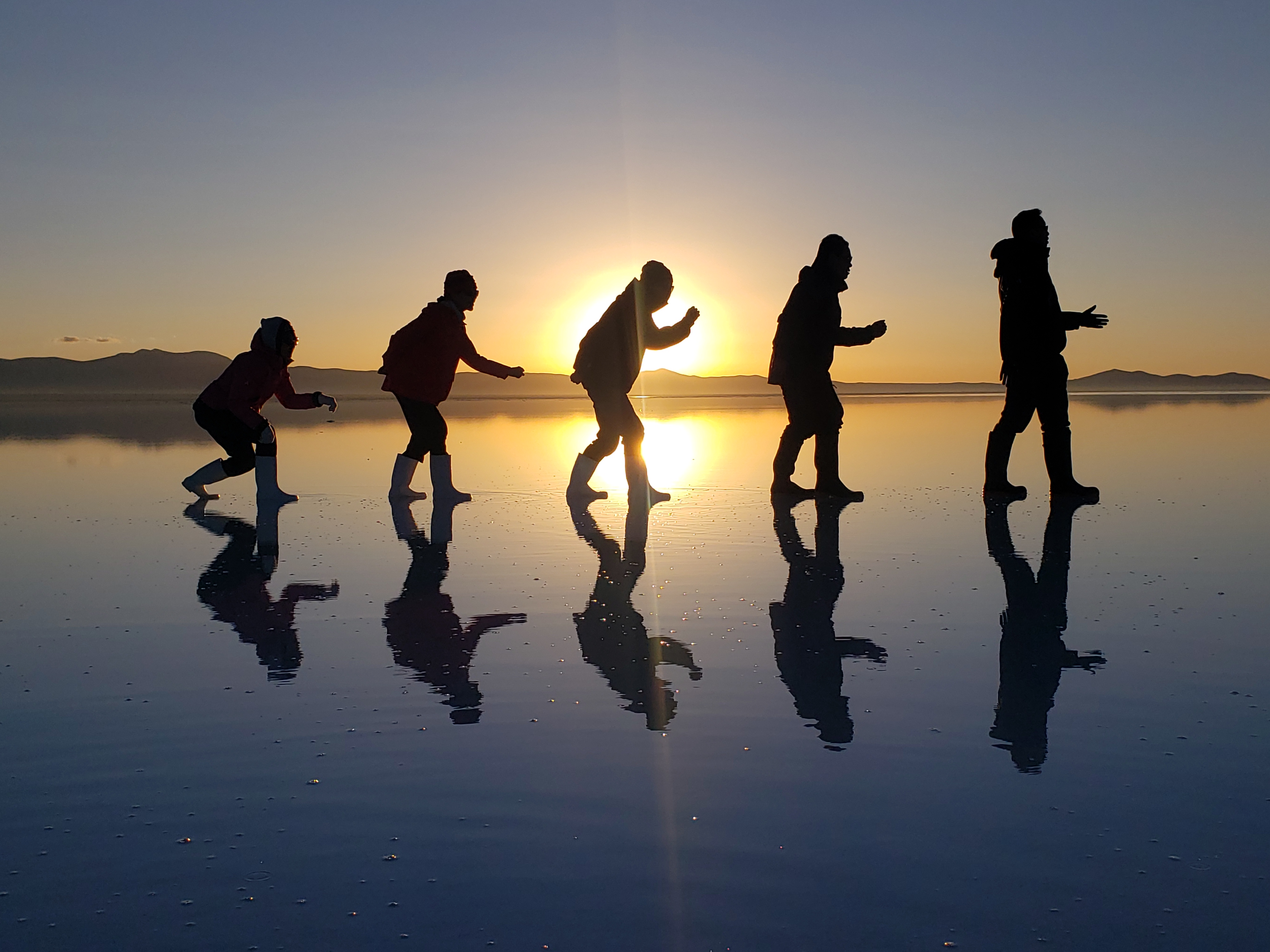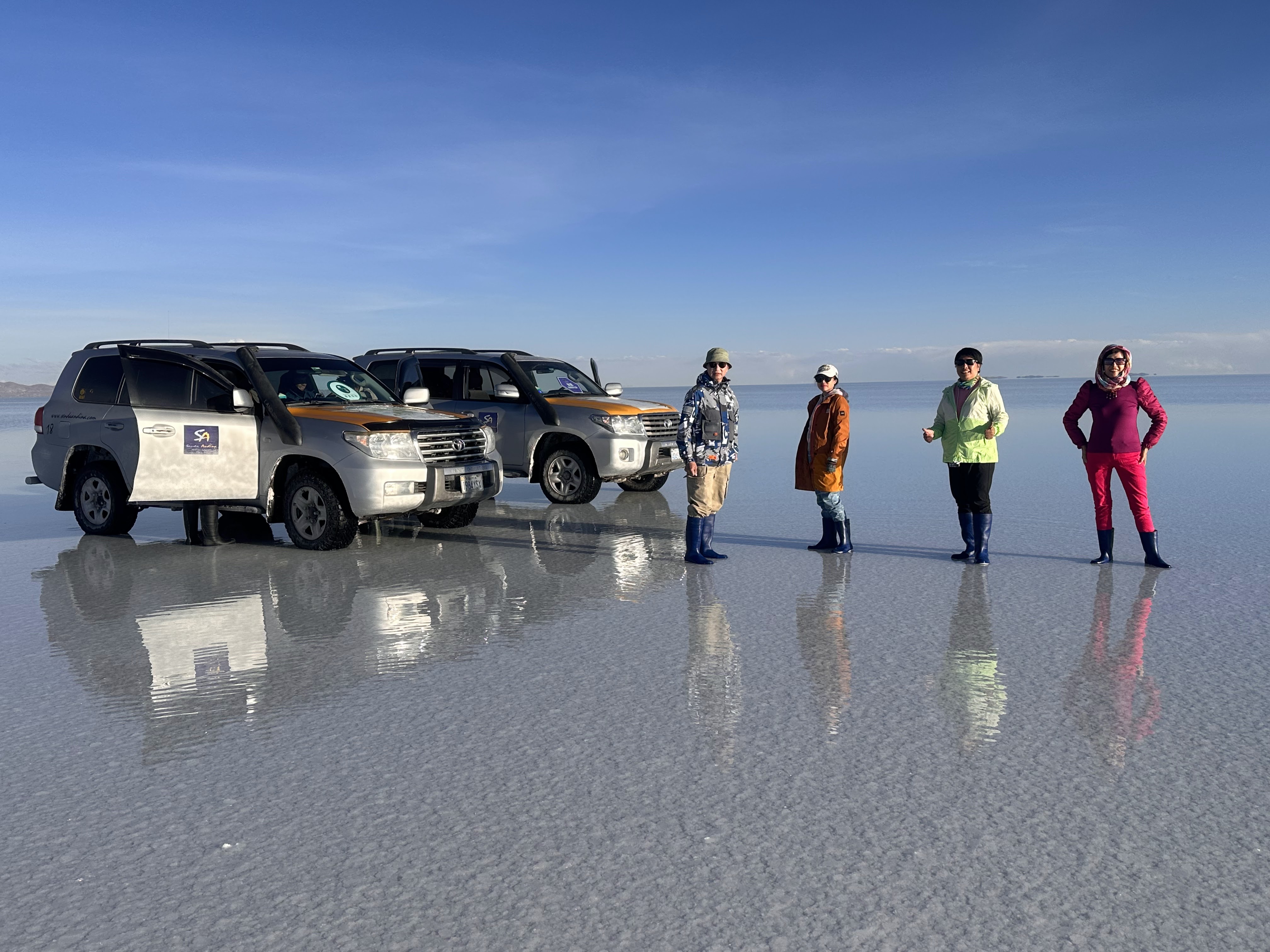 世界上最大的鹽湖。雨季時,大片的鹽晶體於雨後產生反射,平靜的湖面反射著天空景色,呈現出如天地合一的倒影,就是聞名的「天空之鏡」。如天氣情況許可,安排於鹽湖觀賞日落美景及晚上觀星。