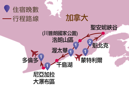 加拿大:蒙特利爾、魁北克、川普朗國家公園、洛朗山區、渥太華、尼亞加拉大瀑布區、多倫多