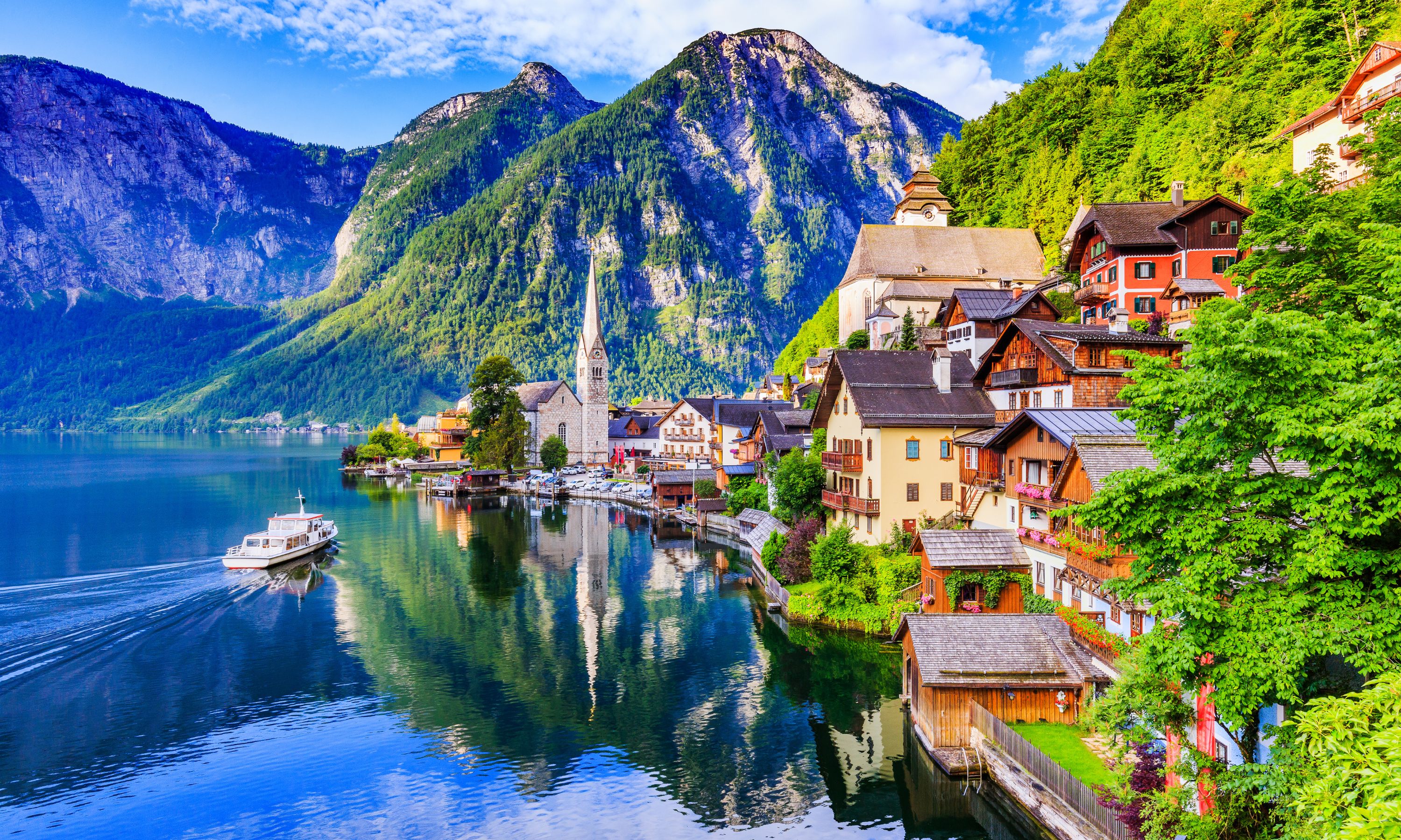 古語中「Hall」指的是鹽、「Statt」則是德語中指的是小鎮,因鹽礦成就了城市的發展與繁榮。現在居民人數不到800人,加上沒有太多開發、小鎮保有非常原始的風景,1997 年列入世界遺產,每日大量遊客慕名而來,成為奧地利最著名的景區。安排乘觀光船漫遊哈爾施塔特湖。