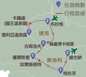 捷克:布拉格、國王溫泉鎮(卡羅維)、瑪利亞溫泉區、古姆洛夫
