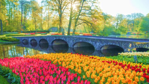 世界上最大的鬱金香公園,每年春天在此上演「花壇」盛事庫肯霍夫花展,是現今最大的鬱金香花展。園中種植800多種鬱金香,超過7百萬朵花卉璀璨綻放。