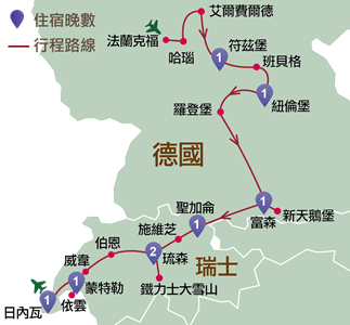 瑞士:聖加侖、施維芝、琉森、鐵力士大雪山、伯恩、依雲、蒙特勒、威韋、日內瓦