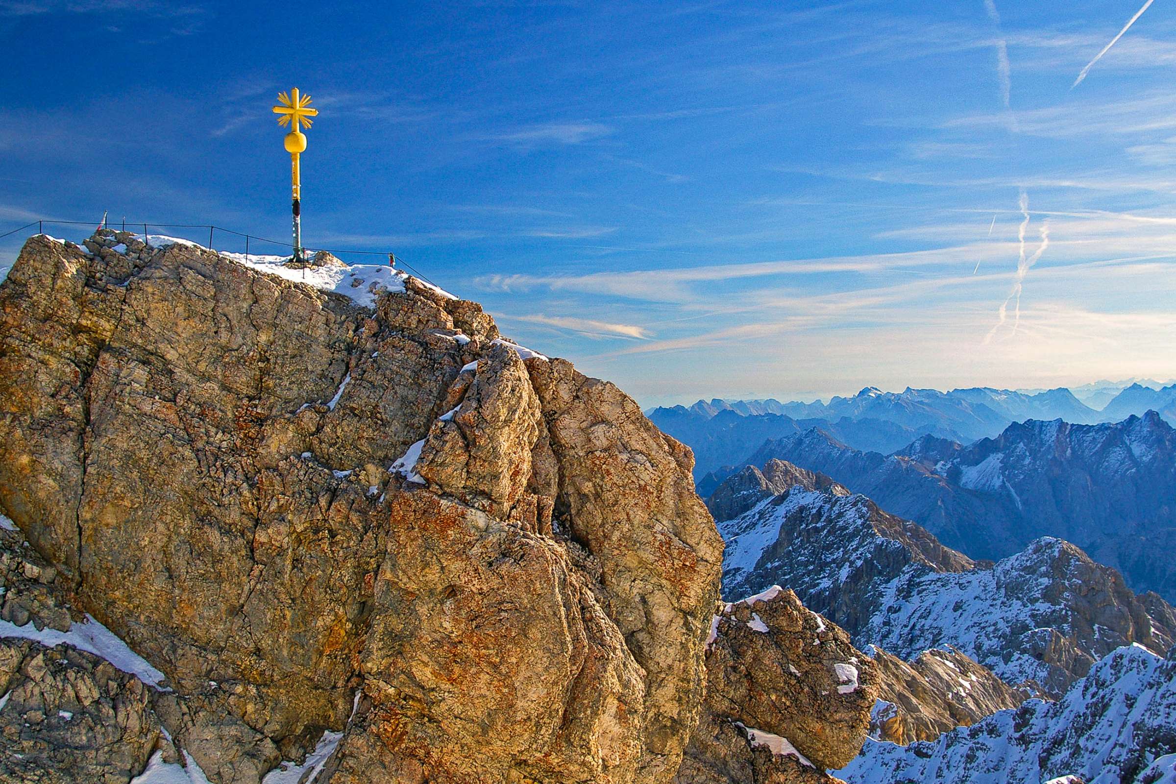 德國最高峰,海拔2962米,登上峰頂可遠眺阿爾卑斯山系壯闊綿延的山巒景緻,還有雲海和雪線。同時,由於楚格峰在德奧邊境上,山頂上遊客可輕易地越過國境,進入奧地利。觀景臺上盡覽德、奧、瑞、意四國的阿爾卑斯山區風景;而郵政編碼為82475的德國最高的郵局,就在楚格峰上。