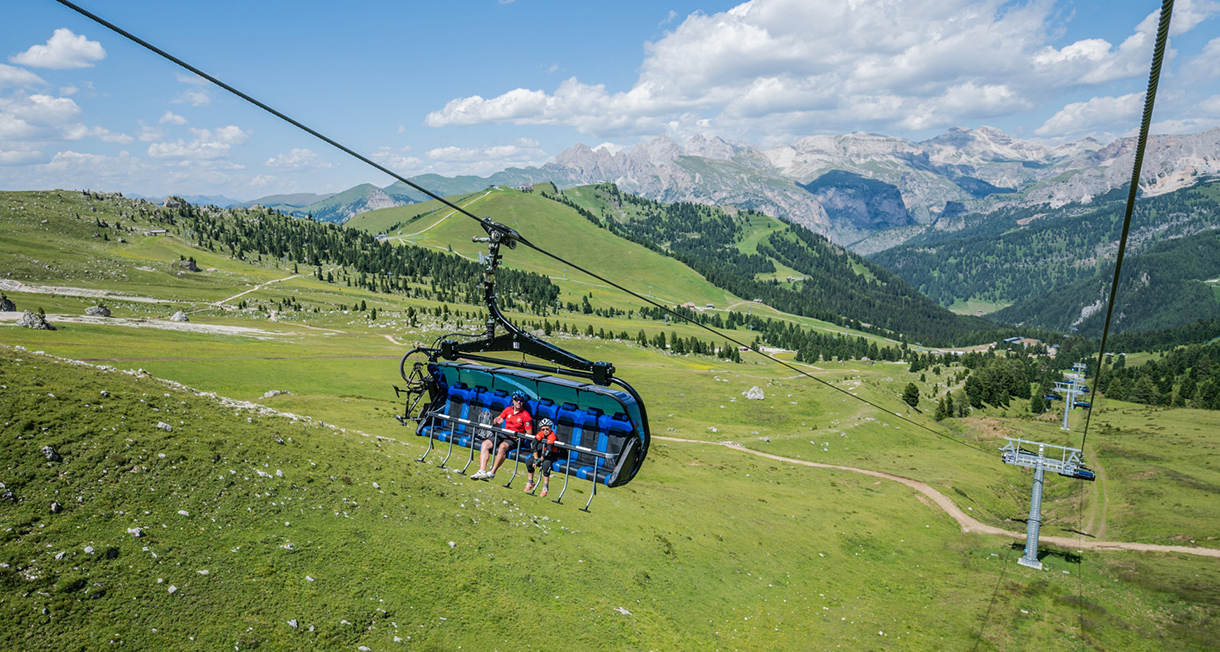 在多洛米蒂,搭乘纜車本身就是享受:寬敞的車廂、視野極佳的透明大窗、全景視野,讓沿途山谷、林海、溪流、村落盡收眼底。