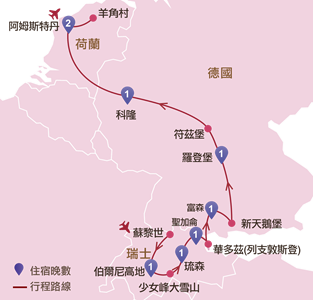 - 如遇展覽會或其他特殊情況而未能提供行程表上的城市或酒店住宿,將安排鄰近或週邊城市之同級酒店住宿,客人不得藉此要求退款或賠償。