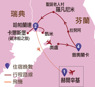 註︰如因天氣或特殊原因未能參觀冰雪城堡,將改為前往Lappari 遊樂及運動中心。