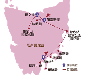 朗塞斯頓、沙菲鎮、德文港、搖籃山國家公園、莫爾溪克斯國家公園、比千魯、菲欣納國家公園、
