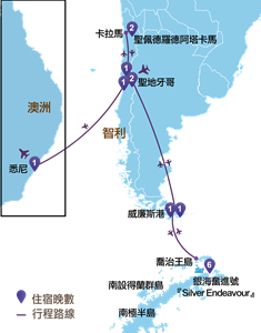 早餐後,前往機場,乘坐銀海遊輪提供的專機前往喬治王島。抵達後前往郵輪碼頭,由領隊協助下辦理登船手續並登上銀海遊輪『Silver Endeavour』。
